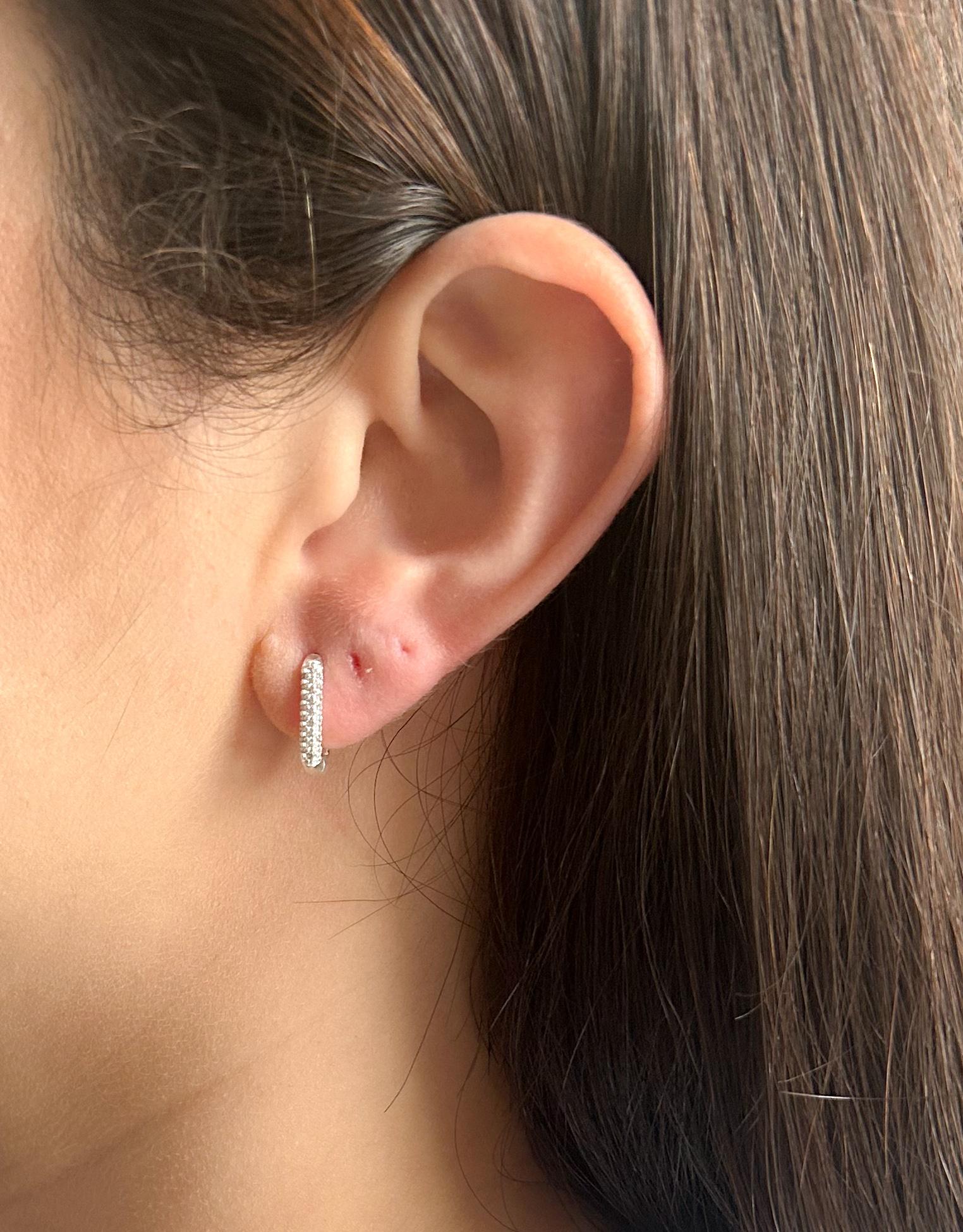 Argola Retangular em Prata 925 Crevejda Fecho Click
