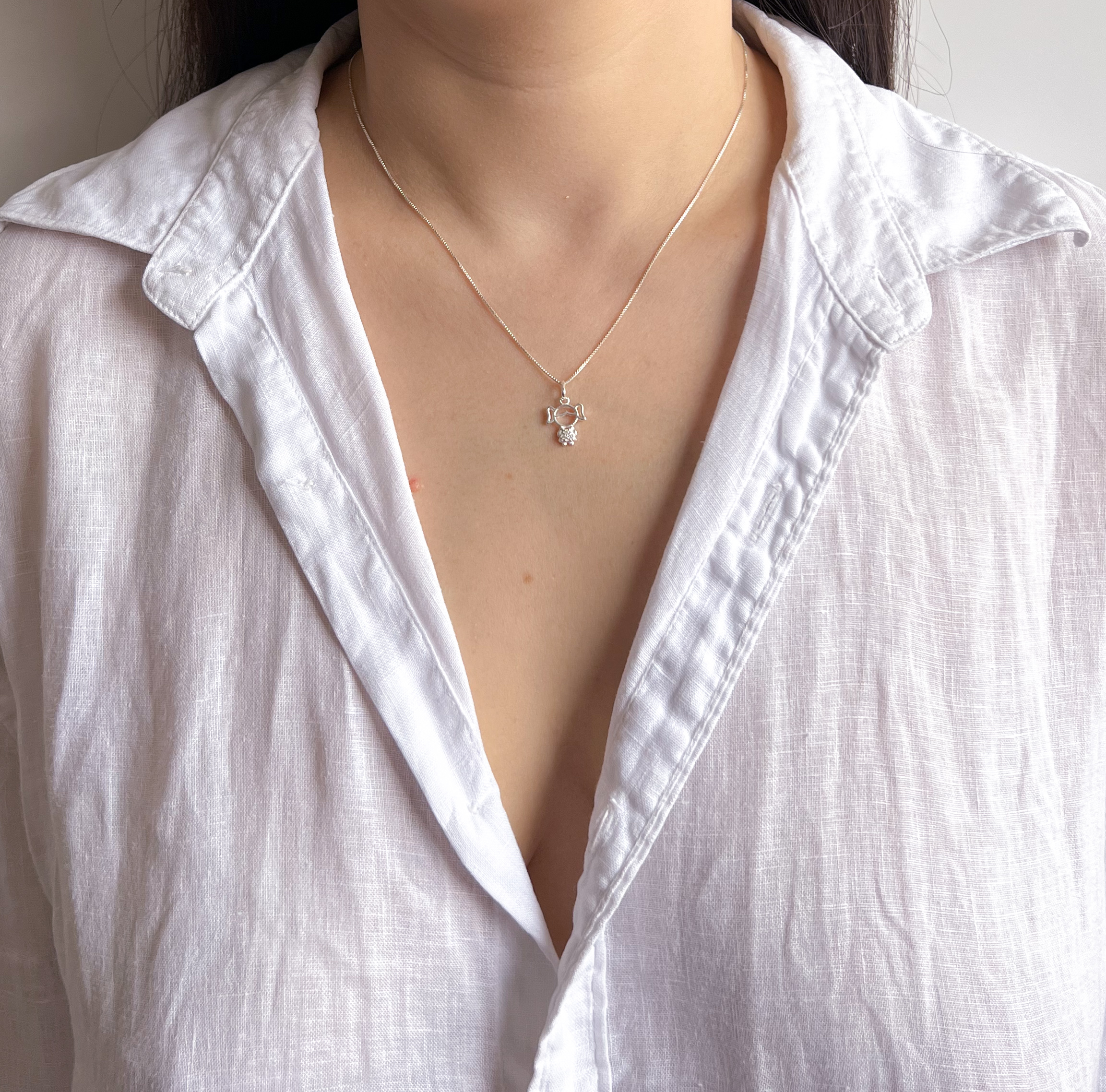 Colar em Prata 925 Corrente Veneziana Pingente Menina Cravejado com 45cm