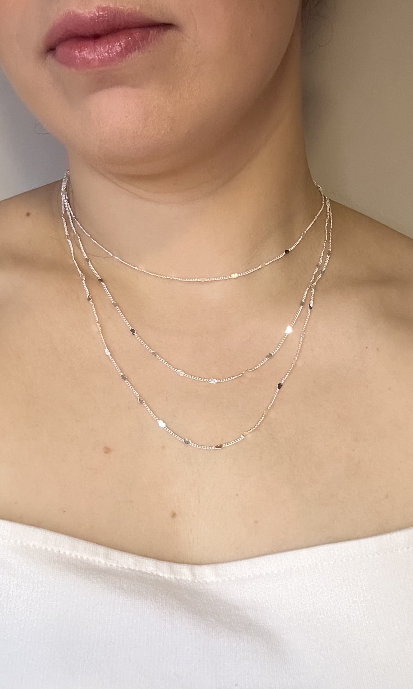 Conjunto de Colar triplo Mini Corações em Prata 925