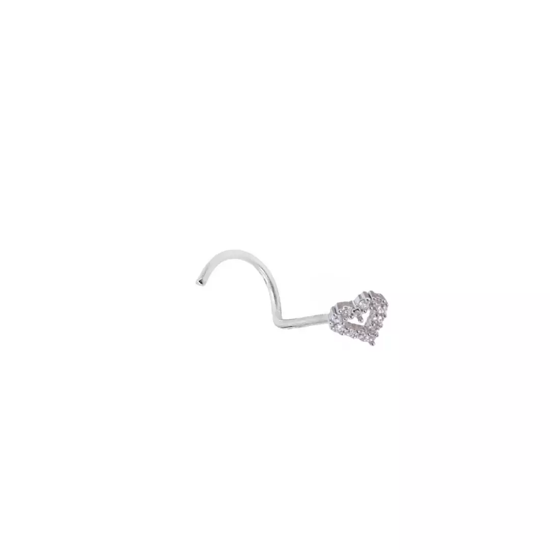Piercing para Nariz em Prata 925 Coração Vazado e Cravejado